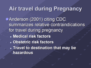 obstetric risk factors, and travel to destination that may be hazardous. |