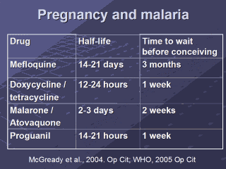 | Waiting periods following administration of antimalarials is given here. They are related to the half-life of the drug. |