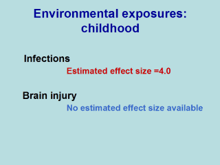 not exposed. There is also some evidence that brain injury in childhood may increase the risk of developing schizophrenia. |