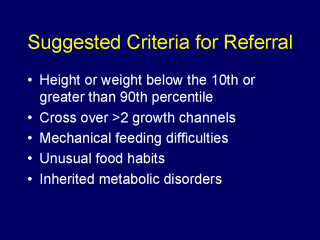 greater than 2 growth channels. Example: Examination 1, a child comes in at the 90th percentile. Examination 2, at the 25th percentile for height and weight. e.g., PKU, diabetes, are an inherited metabolic disorders |