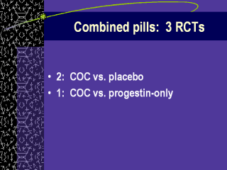 concentrated on: Composition of milk and milk volume Infant growth Only 3 true RCTs related to combined pills, the last of which was published in 1984 |