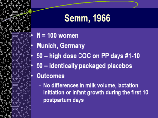 | Lynestrenol 2.5 mg and mestranol .075 mg Problems: Limited details about trial, indicates blinding but not how it was done, no allocation concealment mentioned. No sample size calc, no numerical results or graphs. No mention of discontinuation, loss to follow-up or exclusions. Graphs not labeled. Outcomes were not quantified. |