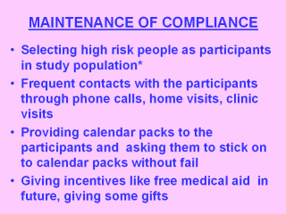 compared to those at usual or normal risk. Significant difference between the outcomes of the two groups depends not only on sample size and elimination of biases but also on the compliance. |