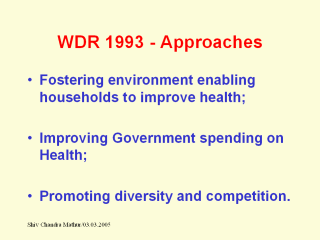 | Whole process of reform started with implementing the recommendations of World Bank report on Investing in Health released in 1993. Three major recommendations of this report are highlighted here. |