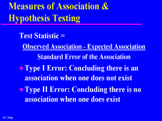 Observed association - the comparison of a single estimate and a standard, or the comparison of two or more estimates.