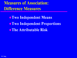 positive infinity, with their expected values, assuming no association, being 0. If one of the means (or proportions) being compared may theoretically be either infinitely less than or infinitely greater than the other one, and if the two means (or proportions) are equal, then the difference between them will be 0. The distribution of a difference measure is about normal if the sample size is reasonably large. Statistical testing, therefore, can usually rely on the known values of the standard normal curve. |