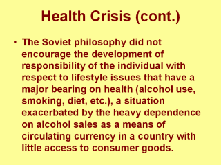 | Soviet medical science was effectively isolated from developments in the West. Soviet Union failed to develop a modern pharmaceutical industry and was dependent on imports or should use many ineffective treatments. |