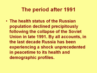 | A combination of a dramatic fall in the birth rate and increasing mortality meant that natural population loss rose from 200 000 in 1992 to about a million per year in recent years. |