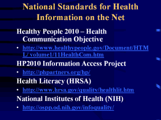 I have actually used Healthy People 2010 as the basis for documenting my Web site. See: