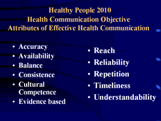 Healthy People 2010 has also created a set of attributes of what effective health communication should possess.