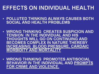 Wrong thinking makes wrong decisions and leads to harmful situations like suicides, accidents by the individuals.