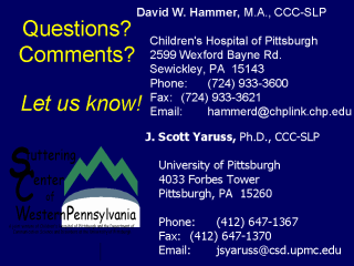 Stuttering Center of Western Pennsylvania - A joint venture of Children's Hospital of Pittsburgh and the Department of Communication Science and Disorders at the University of Pittsburgh.
