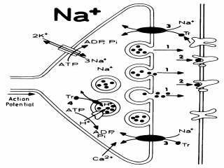 neurotransmitter against a concentration gradient). The synaptic vesicles