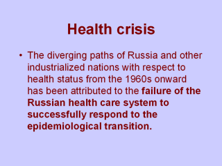 with noncommunicable diseases using current prevention strategy. Old Russian system of prevention, with its primarily medical orientation, did not evolve into one of population-based health promotion. |