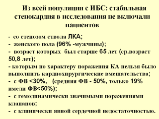 заболеванием (стабильная стенокардия) в исследование включали не более 5-7%