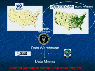 laboratory tests performed by Antech Diagnostics · Antech Diagnostics is the largest provider of laboratory testing in the U.S. It handles requests for laboratory services from >18,000 private veterinary practices · Antech data can be used to study the prevalence and geographic distribution of a variety of infectious diseases, some of which have zoonotic potential |