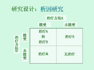 很多试验使用析因的结构,包括对阿司匹林预防心肌梗塞的效果和β-胡萝卜素预防癌症的效果进行了评估的“医师保健研究”(Physician’s Health Study