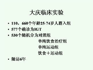 肥胖和体力活动减少是2型糖尿病的主要危险因素。1986年中国大庆进行了一次随机对照试验,以观察改变饮食和体力活动对2型糖尿病的发生的作用。从110,660