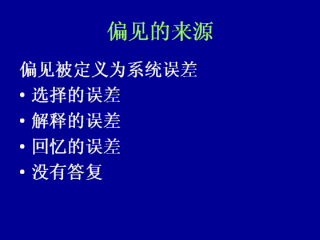 无答复误差:为什么没有回答这个问题?它是否不清晰?还是个人隐私?与采访者之间是否存在负面相互作用?抑或对象害怕做出肯定地回答?