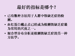 血红蛋白截止点已经成为检测铁缺乏症最为常用的尺度之一,但是由于该方法在正常个体中应用时血红蛋白值的变异性(不稳定),因而使用受到限制。