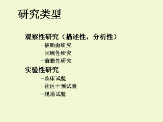 流行病学研究分为两大类:观察性研究与实验性研究,前者通常又称为描述性或分析性研究。观