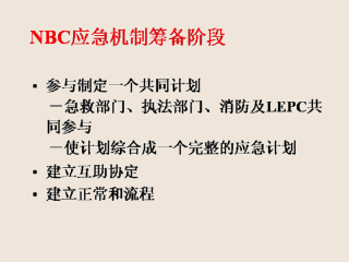 -急救人员,执法人员以及医院的灾害计划制定者应该合作建立一个有组织的途径来应对灾害和大规模的人员伤亡。为了使救援成功,非医护人员和医院灾害救护计划应该结合在一起成为一个统一的救援计划。这个计划最好由现有的机构来完成,例如地方紧急情况委员会(LEPC)或者再加上地方的消防部门领导和地方处理紧急情况的官员。