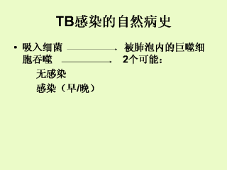 如果出现感染,紧跟着会出现一个初级的复合物,后者多半能封住TB感染。一些细菌可能长期处于静止状态,携带这些细菌的个体结核菌素试验阳性。