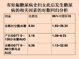 在同一个试验中,在诊断妊娠糖尿病时空腹血糖水平,产后血糖水平曲线下面积,和诊断妊娠糖