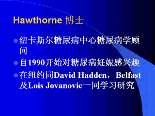 我在英格兰东北部的泰恩河畔的纽卡斯尔糖尿病中心以糖尿病学顾问的身份工作。从1990年开始,我投身于糖尿病妊娠结果的研究中。在1990年,我们认为糖尿病妊娠的结果有所改善并且当时的主要问题是较高的剖腹产率。我们从公开发表的数据中得出假设:从围产期胎儿死亡、先天畸形率的角度出发,糖尿病妊娠于非糖尿病妊娠结果是相似的。一个对于糖尿病妊娠结果的旁观显示上述假设是错误的。