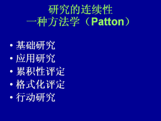Patton方法学为考察所能进行的不同类型研究提供了有用的方案。我们所考虑的多数研究在通常情况下是基础研究。我将略微详细地讨论此类研究。