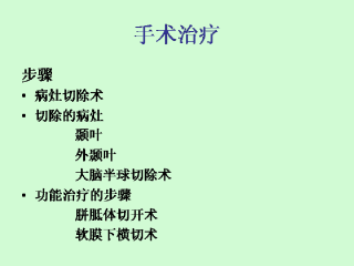 切除一边脑半球。该手术不常用。手术后,患儿的各项功能恢复良好,但对侧手臂常常活动不便。在有些手术中,仅切除部分脑叶。
