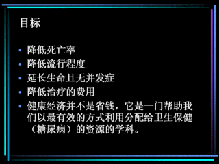 同其他疾病的代价相比,与糖尿病相关的直接代价(住院,医师服务,手术,医疗仪器,实验室检验,药物治疗)和间接代价(疾病,残疾,死亡)是相当大的。这一数据显示了糖尿病的慢性并发症的昂贵代价,包括失明,肾衰竭,坏疽,截肢,以及极大的患心血管病的风险。