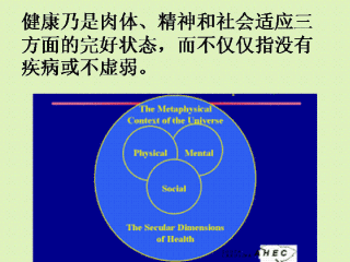 年,世界卫生组织给出了健康的新定义:健康乃是肉体、精神和社会适应三方面的完好状
