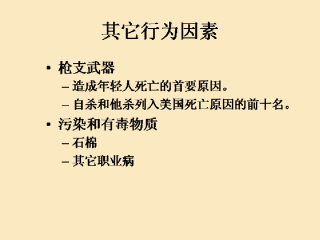 单是看新闻,就容易发现我们生活中每天发生多少手枪暴力事件。在我们讨论的所有因素之中,枪支的使用是引起年轻人死亡的最主要因素。当国会里关于枪支的控制问题还在争论中的时候,大部分公众正在为他们孩子和住所周围的安全问题忧虑。在美国所有年龄段的市民中,自杀是造成死亡的的第九大杀手,他杀排名第十。枪支的使用估计每年造成14,000人死亡。