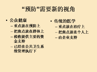 对比公众健康和传统的医学