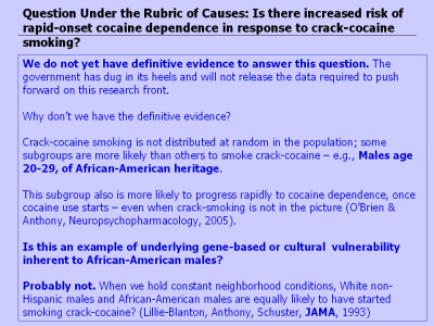 unanswered epidemiological research question. NSDUH data have been gathered so that we might to press forward toward increasingly definitive evidence, but these data are not being released for analyses, due to concerns about potential violation of federal law that protects privacy of research participants. |