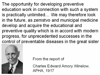 Charles-Edward Amory Winslow (1877–1957) was a seminal figure in public health, not only in his own country, the United States, but in the wider Western world. His vision and intellectual leadership enabled him, more than anyone else, to influence the development of public health services in the United States as well as in many European nations. His inspired leadership did much to ensure that the rapidly developing industrial cities and the rural regions of the United States were adequately provided with the essential public health services of sanitation, regulation of food-and waterborne hazards to health, development of health-education programs, and education of public health specialists. In a period dominated by discoveries in bacteriology, he recognized the importance of a broader perspective on causation than that embraced by the germ theory of disease.