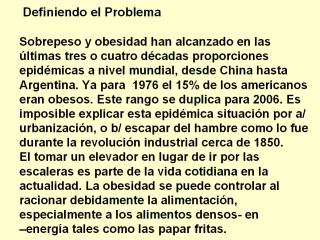 causa obesidad. Necesitamos aprender más acerca de a/ el ambiente