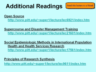 Please visit the Global Health Network Supercourse Project for additional lectures at