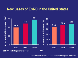 Of the 86,438 new cases of ESRD in 1998, diabetes was the primary cause in