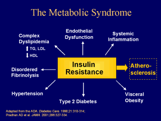 obesity, and type 2 diabetes. Insulin resistance is also a risk factor for cardiovascular abnormalities, including hypertension, dyslipidemia (increased triglycerides and LDL and decreased HDL), disordered fibrinolysis, and endothelial dysfunction. All of these aberrations contribute to the atherosclerotic process. Consensus Development Conference of the American Diabetes Association. Diabetes Care. 1998;21:310-314. Pradhan AD et al. JAMA. 2001;286:327-334. |
