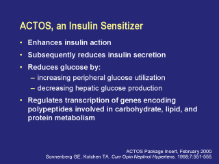 carbohydrate, lipid, and protein metabolism. ACTOS Package Insert, February 2000. Sonnenberg GE, Kotchen TA. Curr Opin Nephrol Hypertens. 1998;7:551-555. |