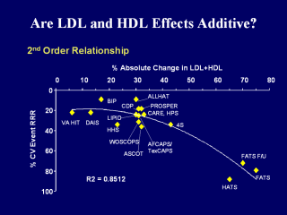 of LDL+HDL and cardiovascular event risk reduction, using data from major