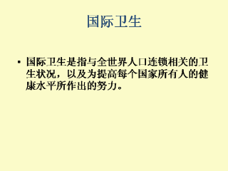 国际卫生不能从特定的疾病或者特定的国家来观察。我们需要检查所有影响健康的跨国界或者跨学科的条件。“国际”一词从字面上根据国界来定义,而“全球”一词则包括了整个世界。如果所有的医学,公共卫生学和护理学学生能够共同努力,我们就能改变世界的卫生状况。这种在全球卫生研究方面的相互协作能够帮助我们超越地理的,经济的以及其他所有隔离我们领域的界限。