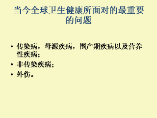 当今在全球卫生健康方面最为严重的问题是什么?1996年一份里程碑式的出版物,《全球疾病负担》,针对三大类构成世界主要疾病负担的卫生问题,列举了自1990年以来的数据以及预测到2020年的数据。这些问题是:第一类:传染病,母源疾病,产期疾病以及营养性疾病;第二类:非传染疾病;第三类:外伤。每一大组内还有更为详细的状况。