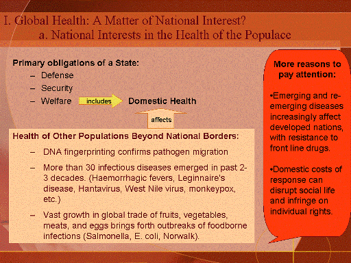 close attention to global health, not only for the sake of people in