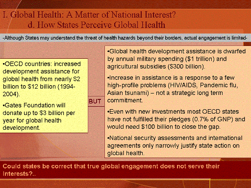 devoted to a few high profile problems: AIDS, pandemic influenza,