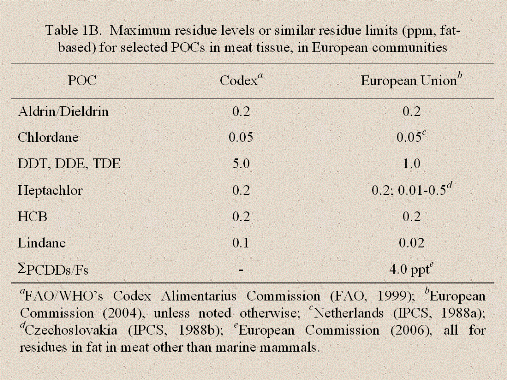 kg of fat), except for dioxins (PCDDs/PCDFs) for which the limits are
