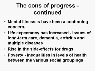 trend may now be changing back to some extent. Along with the reduction of infections, life expectancy has increased with a rapidly growing population at the upper end of the age spectrum. This has coincided with increased population mobility, and the weakening of family bonds. Issues of long-term care, dementia, arthritis and multiple diseases have to be considered alongside other priorities for health care. Violence, whether towards children, partners or in the streets, has been present over the years and there is little evidence of any profound change in incidence or effective means of prevention other than reducing alcohol consumption, a difficult step to achieve. With the increase in the availability and use of effective drugs, there has also been a rise in the side-effects they can cause. From the public health point of view, they have underlined the need for an adequate system of surveillance. Poverty stands out as a factor of major impact on health throughout the whole period. There has been an indisputable improvement in standards of life in state provision for those in need. The change from the old Poor Law to the present welfare and benefits system has improved life for many. But even with these changes, inequalities in levels of health between the various social groupings have remained to the detriment of the deprived and are unacceptable at the end of the 20 century. |