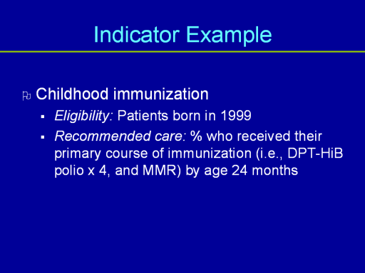 For each indicator we identified specific eligibility criteria (for patients), and the recommended care, based on clinical practice guidelines and previous research. To be considered eligible, patients had to have at least one physician visit in the study period ( 2001/02).